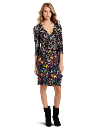 This wrap dress features a small brush stroke collage printAvailable at Amazon Check Price Now!